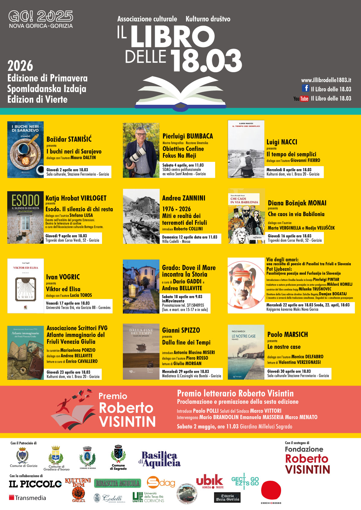 Nel tempo, “Il libro delle 18.03” ha inoltre toccato numerose sedi del territorio isontino, estendendosi fin da subito anche alla vicina Slovenia: una naturale apertura per una rassegna che non ha mai conosciuto confini.